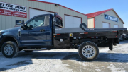 • Dual lift cylinders • Constructed with 11 gauge deck plate and 6″ stringer • Tie down rails with stake pockets • Removable side boards • Synchronized squeeze arms • Lights in the headache rack • Louvered sun visor • Spinners • 30,000 lb recessed 5th wheel ball • Receiver hitch