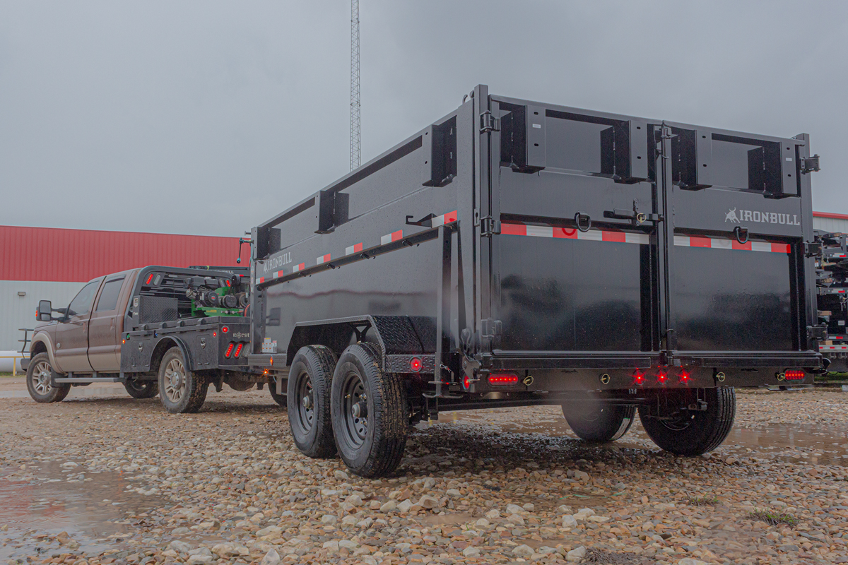 Iron Bull DTB beast models are built to work. Every DTB sits atop of a dual layer of 6" I-beam weighing in at 12 pounds per foot main frame construction. That's 24 lbs/ft of pure steel putting maximum strength into the most critical part of your trailering system. These show-stopper trailers are built to haul. 14,000-21,000 lbs of GVWR and are equipped with enough lifting power to ensure you can always get your job done. Now for 2020, each Iron Bull 83 wide dump comes equipped standard with an industry best one piece 7 guage floor and 24" high 10 gauge sides with 7 machined breaks that will not bend, bow, or buckle even under the most demanding conditions. One of the most unique features on the Iron Bull DTB is the structure under the bed. Another instance of strength where it matters is our one of a kind ramp tracks. These full length bed runners ensure your floor is never warped across the crossmembers by any heavy tracked equipment you might haul. We have also equipped 10k jacks and a side step for easy bed access. A three way gate will ensure maximum flexibility for transport and dumping. Top tier components come together with the most rugged construction on the market to deliver a dump trailer like no other. Dexter Nev-R-Adjust brake axles and radial tires provide a solid foundation for each Iron Bull dump trailer and ample grip for stopping power. Sherwin-Williams Powdurda Powder coat gives each trailer a rugged finish with a showroom shine. 516 hydraulic cylinders are nested into a scissor hoist and provide the muscle for each Iron Bull dump trailer with KTI remote operated hydraulic pumps feeding the beast. USA made, lifetime LEDs are provided by TecNiq lighting and all units are powered by an Interstate deep cycle battery. Each Iron Bull Trailer also comes equipped with a standard tarp kit, spare tire mount, jack stand brackets, stake pockets, locking pump box, 5 position adjustable coupler, and 5 amp 110v wall outlet charging receptacle for your battery. Our 83" wide 14k bumper pull is by far our most popular model. With two 7k Dexter Axles and tons of standard features and options for any need, this model is a perfect fit for the contractor or weekend warrior. Back all of this up with our industry-best IronClad warranty which covers every unit with three year structural, two year component warranty and two years free roadside assistance.