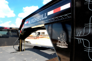 Iron Bull has put a new twist on a classic dove tail design. Our improved patented design offers an upgrade to users that need a no nonsense design and the strength of a Bull. Our dual cylinder mechanism provides unmatched lifting power and our revolutionary full tension lock up system provides a rock solid foundation while towing. An industry best max lifting capacity of 12k lbs properly loaded and max hauling capacity of 8k provides an unmatched performer. This design auto locks so there is no need to manually engage and disengage a separate device when lowering and raising the tail - perfect for wireless remote applications. When in action, the dual arms approach the ground as the tail lowers and provide extra rear stability when loading heavy equipment. Iron Bull Goosenecks are some of the most rugged and longest lasting units in service today. Decades of experience in our new manufacturing company have combined to create one of the most thought out trailers available. New for 2021, included on each Iron Bull tandem dual trailer is Dexter's rugged HDSS adjustable suspension. This is their top-of the line suspension package and it's free on every Iron Bull! You will also find standard a pipe bridge to reduce torque under heavy loads. You will also find standard a pipe bridge to reduce torque under heavy loads. Heavy SCH40 construction outclasses thin walled pipe as seen on some of the competition. Low-Pro, pierced frame design lowers the deck 3" providing a lower center of gravity, more stable cornering and a lower loading angle for equipment. 12" 19lb/ft I-Beam makes up the main frame of these monsters - compared to the 14lb found on the other guys. Heavy duty 10" I-beam crossmembers are located on the lower main frame to further support the pipe bridge. These important steel beams are omitted by some competitors. 3" Channel crossmembers located in the deck frame are on 16" centers and topped with 2" x 6" treated pine wood and you will find a standard locking toolbox at the front of each gooseneck trailer. Two 16" side steps adorn the front of each deck. Standard -- Not an option -- and oversized to ensure stable footing each and every time you climb on the trailer. All wiring is in a sealed harness and runs inside the 2" x 6" upper deck frame. Sherwin-Williams Powdurda Powder coat gives each trailer a rugged finish with a showroom shine. USA made, lifetime recessed LEDs are provided by TecNic lighting. Each Iron Bull Trailer also comes equipped with stake pockets, pipe spools and rub rails as well as an adjustable coupler. All Iron Bulls are sitting on Dexter Nev-R-Adjust brake axles and roll down the road on radial tires.