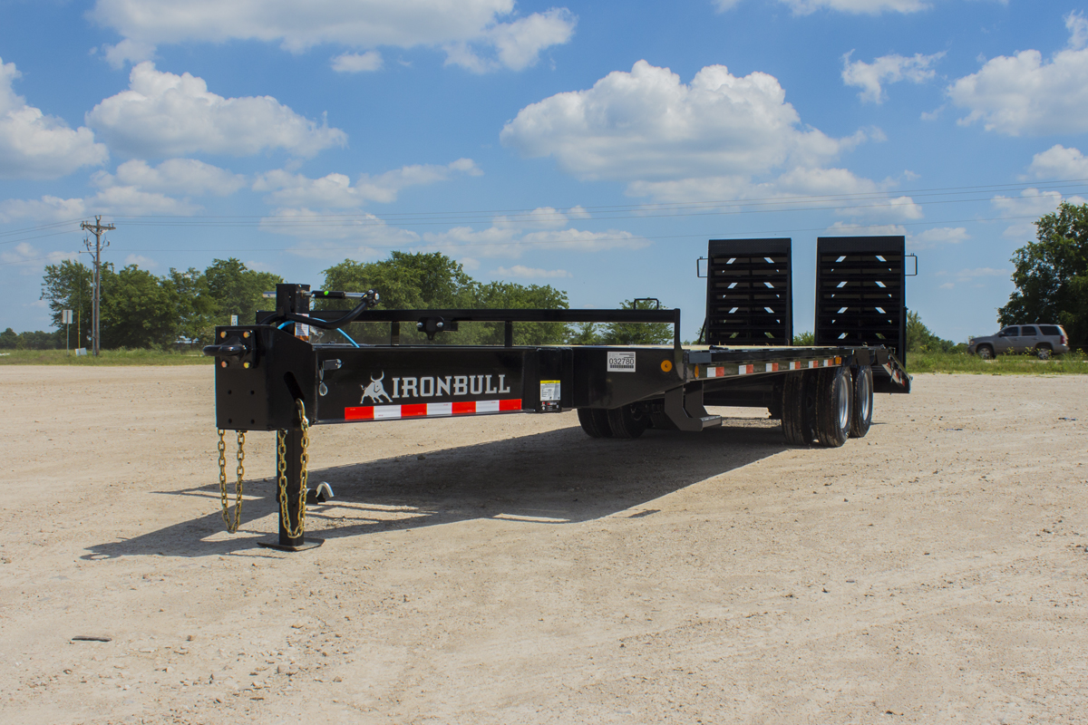 If you have a heavy load and a heavy hauler, our FLP is where you want to be. Standard equipment includes 12" / 19 lb I-beam frame and 3" structural crossmembers constructed in our pierces beam low profile design. This lowers your center of gravity over traditional construction for better loading angels and maximum over the road towing and handling. Standard rub rail, standard pipe spools, and a HD front bumper give plenty of tie down options just like the big rigs. You will also find standard a pipe bridge to reduce torque under heavy loads. Heavy SCH40 construction outclasses thin walled pipe as seen on some of the competition. This monster hauler rides on 2-10k Dexter tandem dual axles with free HDSS adjustable suspension that can be upgraded all the way to triple 15k axles for maximum hauling capability. Full LED lighting and 235/80R16 radial tires and treated 2x6 pine floor are also standard. Add a set of our Rampage Ramps or even dual HD hydraulic ramps and you have a real Iron Bull all backed by our Industry best Iron Clad warranty package.
