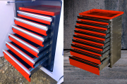 The Norstar SC Service bed is a great addition to your truck if your job is constantly on the move. Our full blown Service Bed offers multiple standard tool boxes and many options for the go needs. This bed comes with 4 oversized vertical cabinets with standard adjustable galvanized shelving, 2 horizontal cabinets with adjustable galvanized shelving, plus a bonus locking rear shovel compartment for tons of additional storage. Multiple option choices allow you to build this bed to perfectly suit your industry. All doors are gas shock equipped and locking paddle latches are standard. Our 2.5” bumper receiver allows you to add a hitch for bumper 18,500 lbs of rated pull capacity. Available cabinet drawers can add the finishing touch if you have a lot of parts or tools for your work load. Multiple lighting choices and cast housings are also available. These beds are a perfect complement for any single or dual wheel work truck with smooth 11 gauge sides and white or gloss black powder coating.